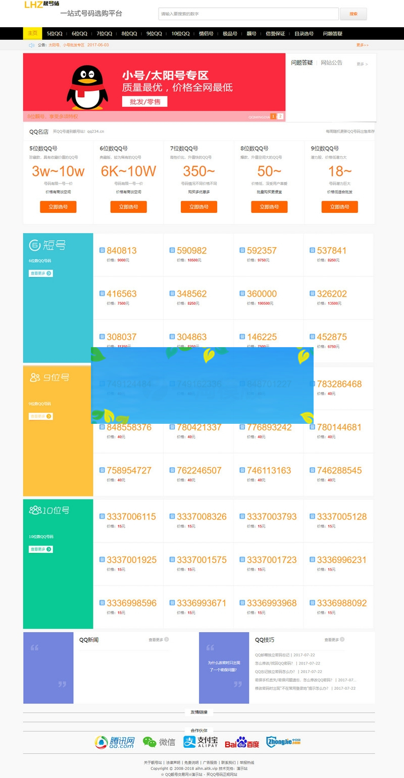 帝国CMS仿号码交易源码,QQ靓号商城源码,适配移动端整站源码。不仅可以用来做QQ靓号交易平台,改一改还可以做YY号码等虚拟号码交易平台。