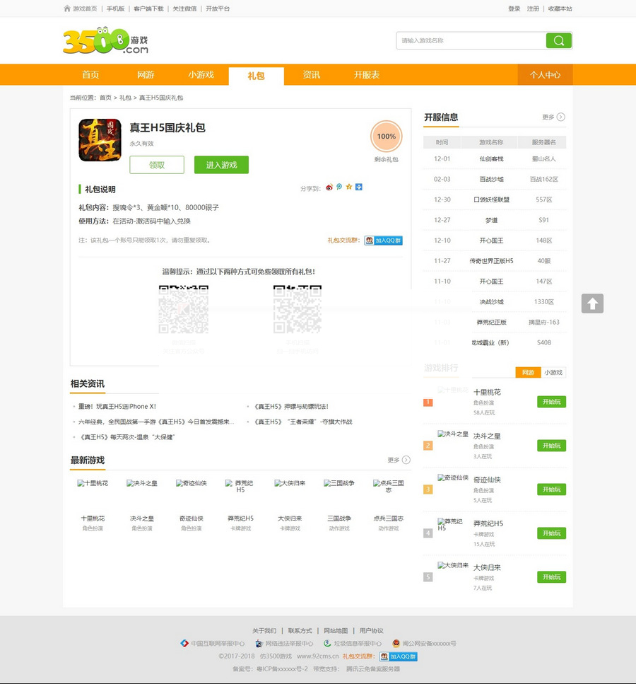 帝国CMS7.5仿《3500游戏》源码,大气H5游戏门户网站模板,H5游戏在线网站源码;价值899RMB的帝国CMS H5游戏模板。